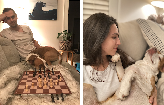 Brett continues to work from home most days and exercise in the garage most evenings. He's become addicted to sparkling water, started reading about five different books at the same time, and taken to watching construction tutorial videos on Youtube. We walk the pups and watch movies and cook dinners with strange spices to see if we stumble upon greatness. The other day I had him make up a spice blend for a pork tenderloin while blindfolded and his giggles were contagious.